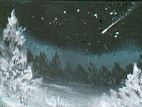 Another Dollhouse Painting today. Have you ever looked up at the sky on a clear crisp winter night. With any luck the Northern Lights will be out. And with even move luck you will see a falling star at the same time. If you are lucky enough to see this be sure to make a wish!
